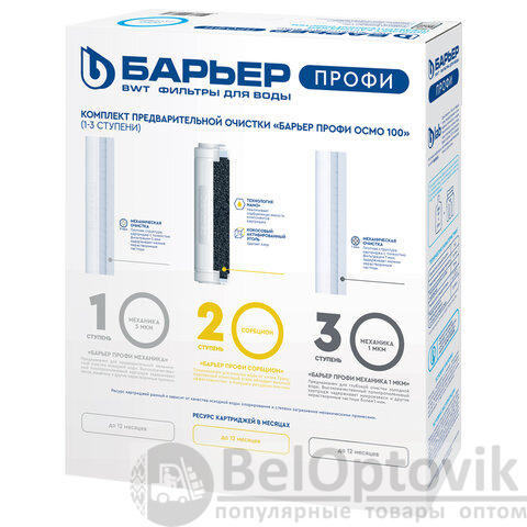Защитите мембрану и продлите жизнь фильтру! БАРЬЕР "ПРОФИ Осмо Предфильтр" – ресурс 20 000 л, 3 ступени очистки, совместим с любыми SL10-осмосами. Экономия и надёжность!