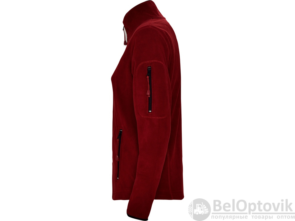 Куртка из микрофлиса с высоким воротом. Контрастная центральная молния, боковые карманы на молнии, декоративная молния на левом рукаве, отделка резинкой по краю рукавов. Налокотники из основного материала.