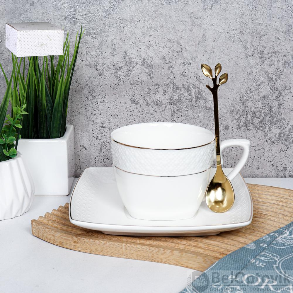Чайная пара 2 предмета 240 мл ПАРА GA9 /уп 48/ костяной фарфор в подарочной упаковке с ложкой Веточка золото
