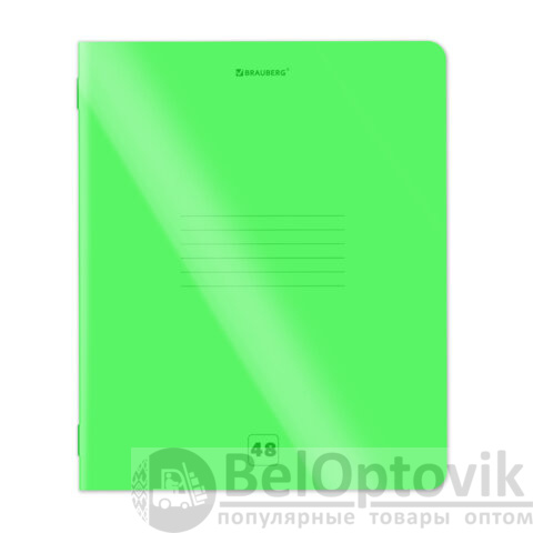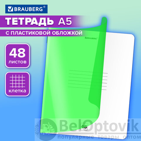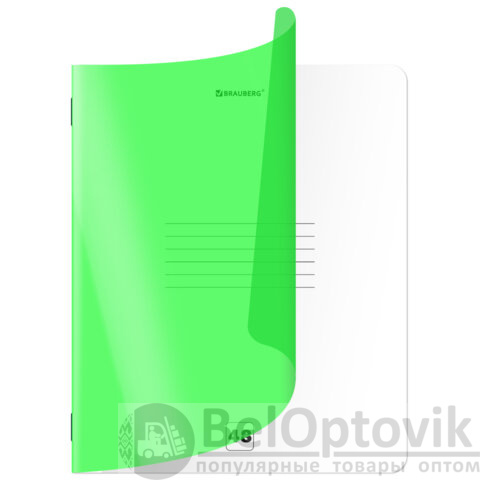Тетрадь пластиковая обложка (НЕОН) А5, 48 листов, скоба, клетка, BRAUBERG "Smart Cover", ЗЕЛЕНАЯ, 405038