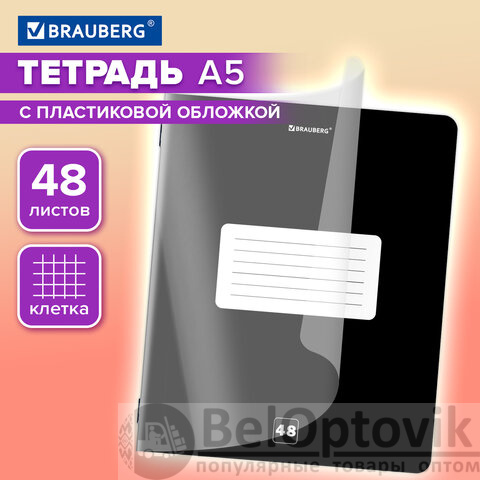 Тетрадь пластиковая обложка (прозрачная) А5, 48 листов, скоба, клетка, BRAUBERG "Smart Cover", ЧЕРНАЯ, 405040