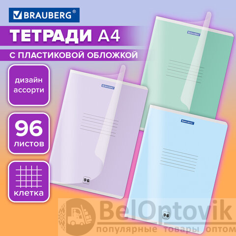 Тетрадь пластиковая обложка (прозрачная) А4, 96 листов, скоба, клетка, BRAUBERG "Smart Cover", АССОРТИ (микс в спайке), 405042