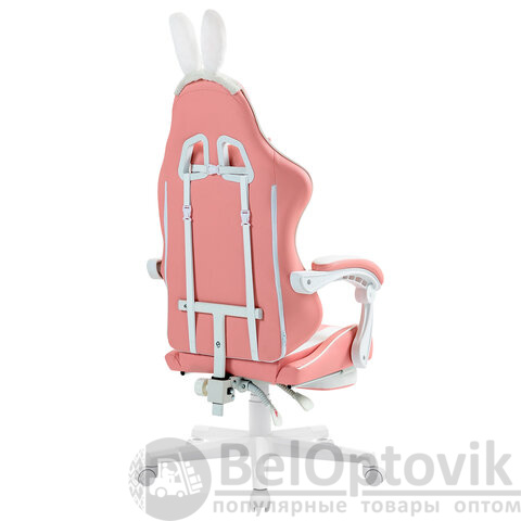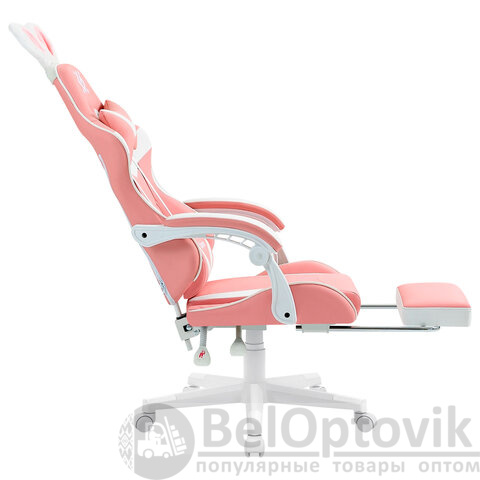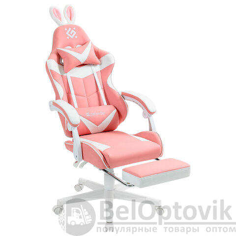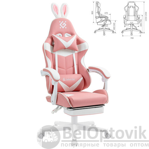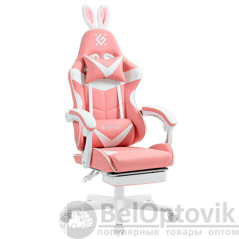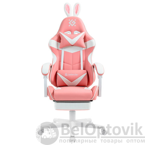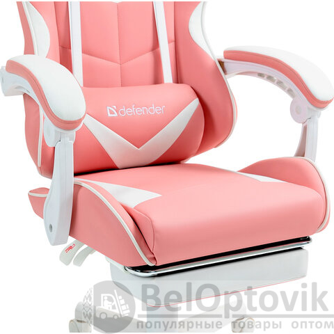 Кресло компьютерное DEFENDER "Irifi", 2 подушки, подставка для ног, экокожа, розовое/белое, 64042