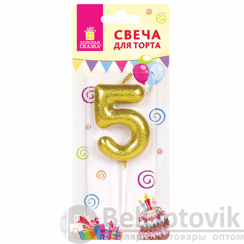 Свечи для торта являются неотъемлемым атрибутом праздника. Свеча-цифра для торта "5" ЗОЛОТАЯ СКАЗКА станет прекрасным украшением торта и других кондитерских изделий по случаю дня рождения, юбилея и любого другого торжества.
