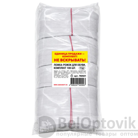 Обувные ложки обладают компактной длиной 15 см и толщиной 1,95 мм. Комплект предназначен для использования в обувных магазинах, гостиницах и домашнем обиходе. В зоне захвата имеется отверстие для фиксации, что позволяет повесить на крючок. Ложки выполнены в белом цвете. В комплекте 100 шт.