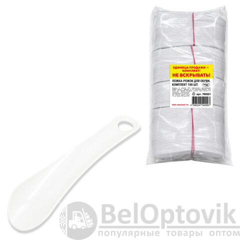 Ложка рожок для обуви ПЛАСТИКОВАЯ 15 см, БЕЛАЯ, КОМПЛЕКТ 100 шт., WBZ SHOES, 702521