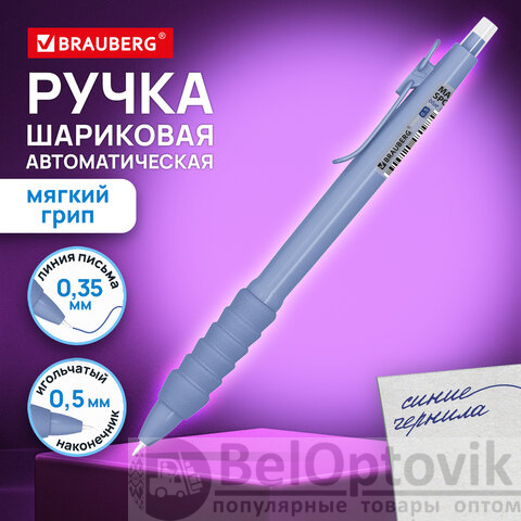 Ручка шариковая автоматическая BRAUBERG "MAXI SPONGE", мягкий грип, СИНЯЯ, пишущий узел 0,5 мм, линия письма 0,35 мм, 144471
