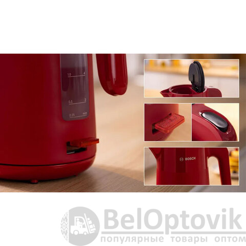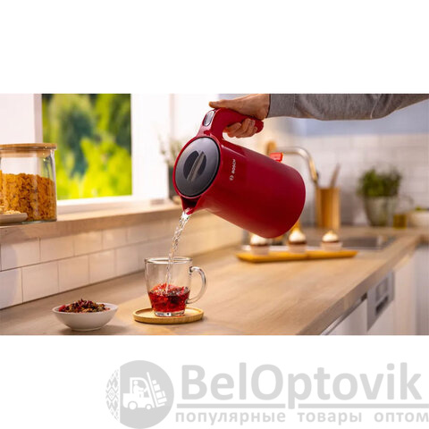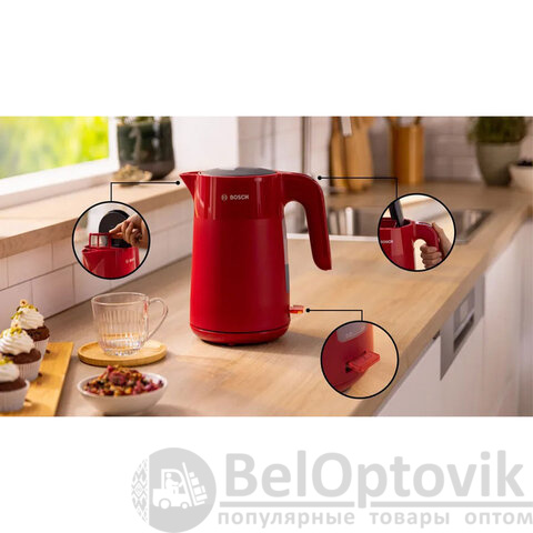 Чайник BOSCH TWK2M164 – яркий акцент на вашей кухне и умный помощник в повседневной жизни. Насыщенный красный дизайн привлекает внимание, а продуманная инженерия BOSCH обеспечивает безопасность, скорость и комфорт!