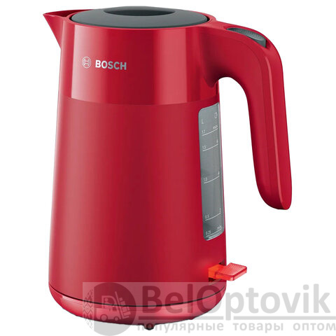 Чайник BOSCH TWK 2M164, 1,7 л, 2400 Вт, закрытый нагревательный элемент, пластик, красный