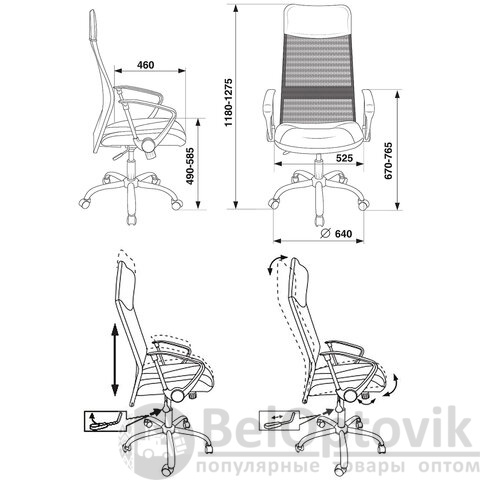 - Максимальная высота кресла: 1275 мм