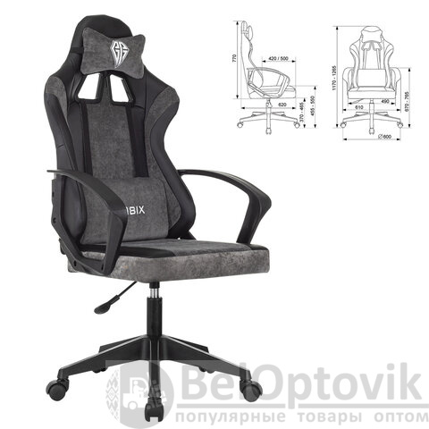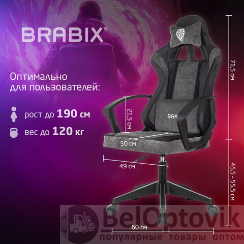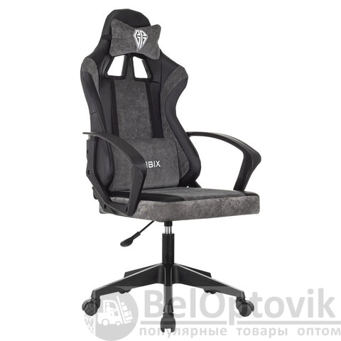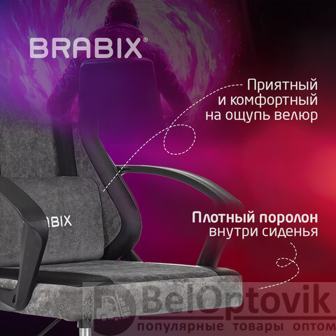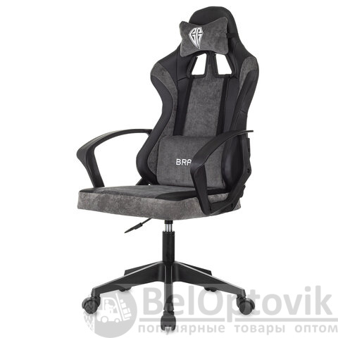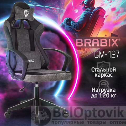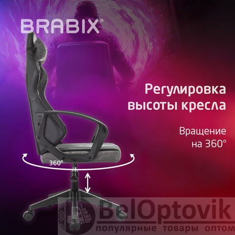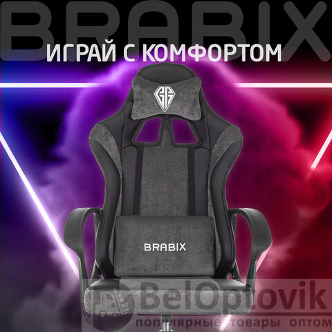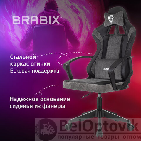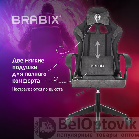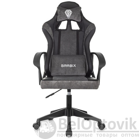 Кресло компьютерное BRABIX "Forcer GM-127", 2 подушки, экокожа/велюр, черное/серое, 533216