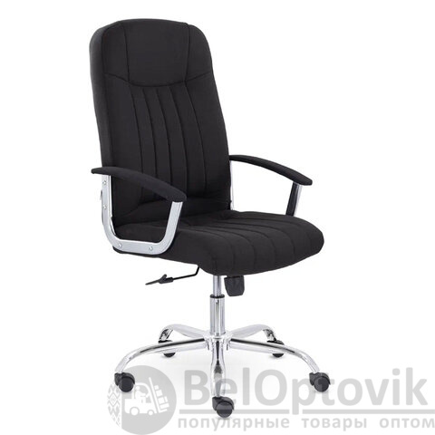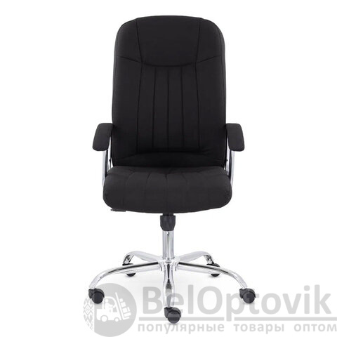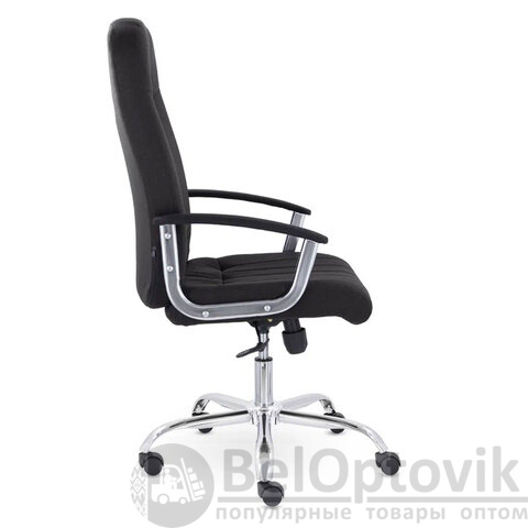Кресло с мягкими увеличенными подушками. Широкая эргономичная спинка имеет две горизонтальные прострочки, которые отделяют подголовник от основной части спинки. Благодаря глубокому сиденью в кресле будет удобно человеку среднего и высокого роста. Длинные хромированные подлокотники способствуют комфортной посадке в кресле.