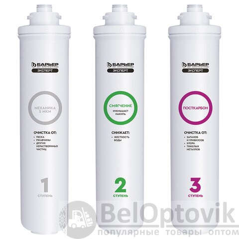 Картриджи сменные БАРЬЕР "Эксперт Жесткость", для холодной воды, 3 ступени, ресурс 10000 л, комплект 3 шт., Р223Р00