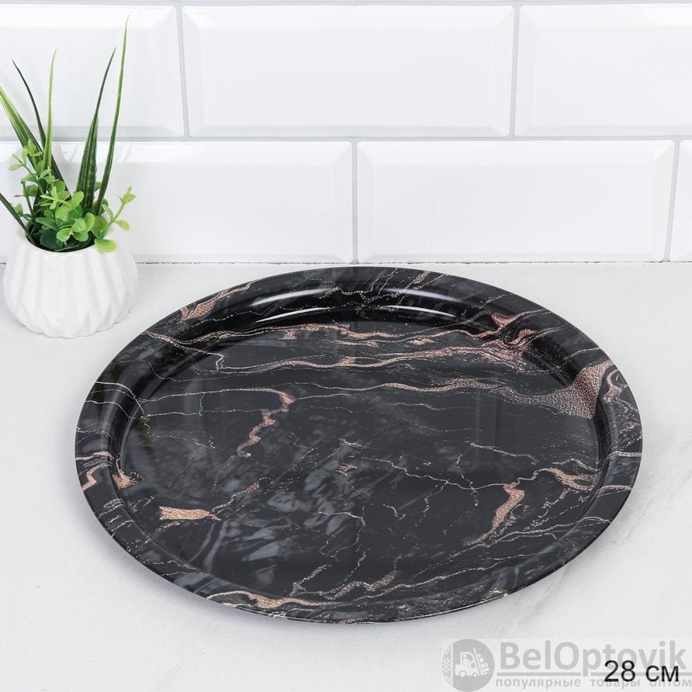 Поднос круглый 28 см Черный мрамор / DR-401 /уп 100/