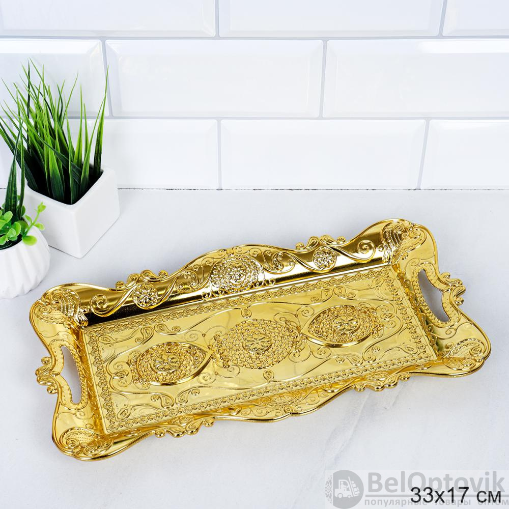 Поднос прямоугольный 33x17 см / 3317 /уп 136/ золото/пластик