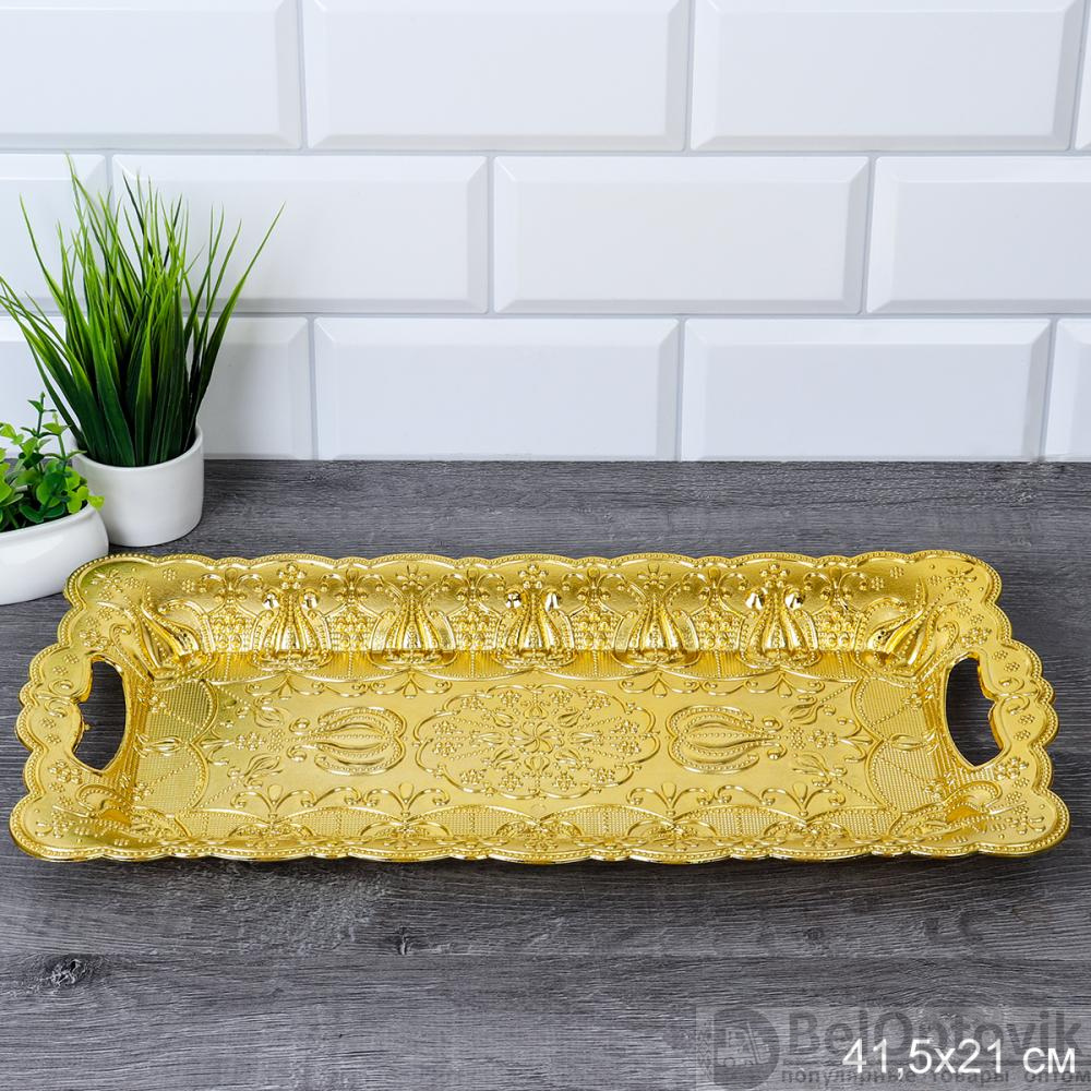 Поднос прямоугольный 41,5x21 см / 4121 /уп 120/ золото/пластик