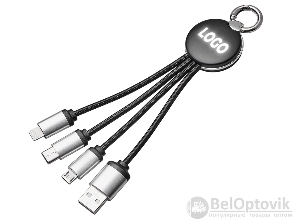 Универсальный зарядный кабель-брелок 3 в 1 — компактное решение для современного цифрового образа жизни. Этот полезный гаджет поддерживает три типа подключения (micro USB, USB-C, Lightning), обеспечивая зарядку от любого USB-A-источника — будь то ноутбук, адаптер или powerbank. Персонализированная гравировка ярко светится при работе, создавая уникальный визуальный акцент, а прочное кольцо-карабин позволяет зафиксировать кабель на ключах или рюкзаке. Компактный размер обеспечивает комфортное повседневное ношение. С этим кабелем вы всегда будете готовы к зарядке — где бы ни находились!