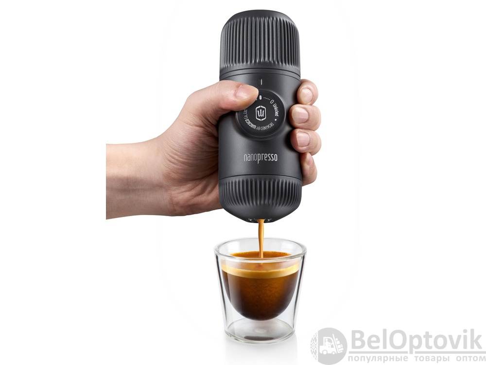 - Комплектность: мягкая сумка-чехол, встроенная чашка для эспрессо 80 мл, корзинка для фильтров, мерный стакан для кофе вместимость 8г, кисточка для чистки Nanopresso