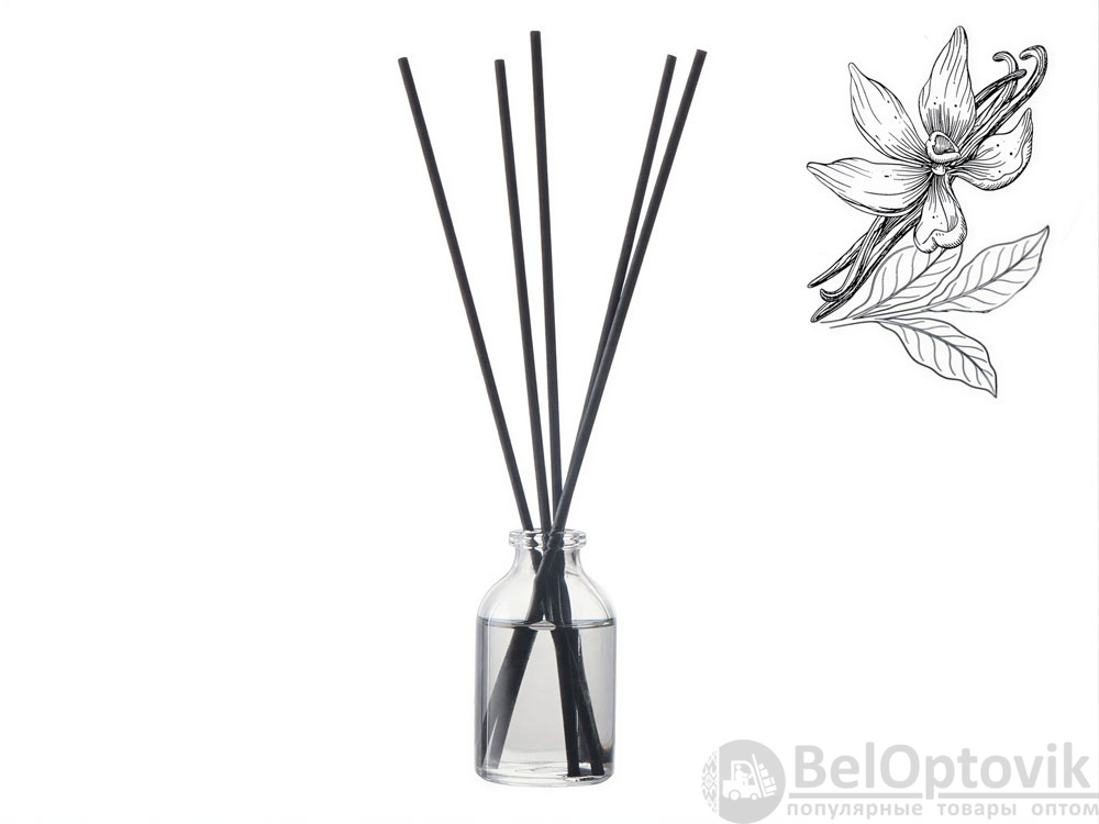 Прозрачный флакон без лишних деталей гармонично впишется в любой интерьер, а чёрные фибровые палочки обеспечат равномерное и продолжительное распространение аромата.