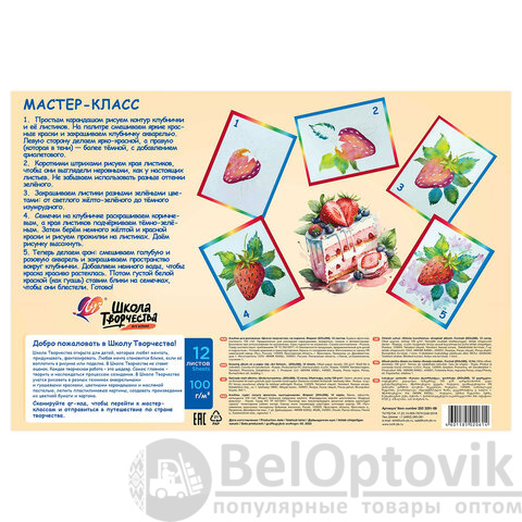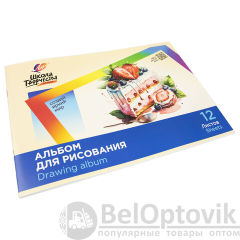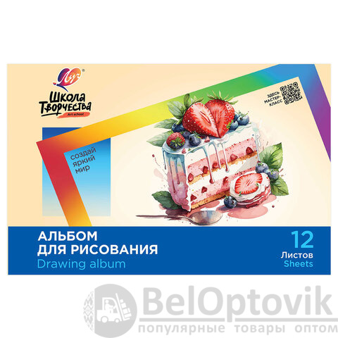 Альбом для рисования, А4, 12 листов, скоба, ЛУЧ "Школа творчества", 203х288 мм, "Торт", 35С 2281-08