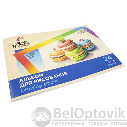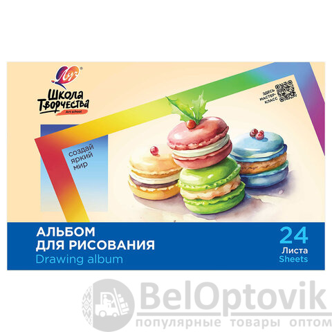 Альбом для рисования, А4, 24 листа, скоба, ЛУЧ "Школа творчества", 203х288 мм, "Макаронс", 35С 2283-08