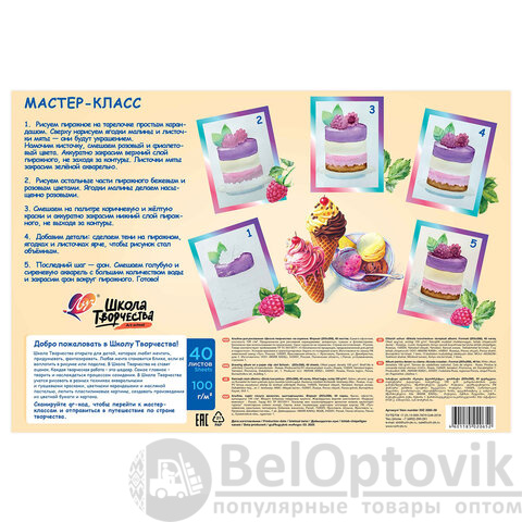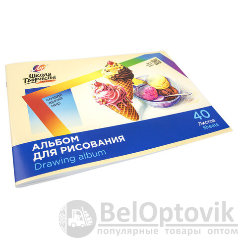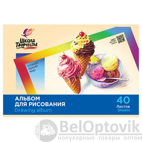 Альбом для рисования, А4, 40 листов, скоба, ЛУЧ "Школа творчества", 203х288 мм, "Мороженое", 35С 2285-08