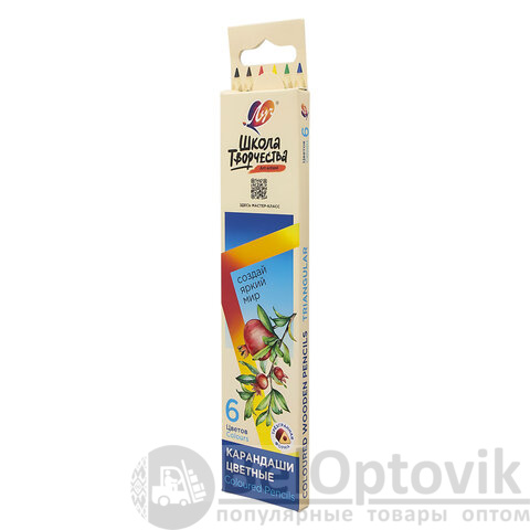 Карандаши цветные ЛУЧ "Школа Творчества", 6 цветов, трехгранные, натуральное дерево, 30С 1805-08