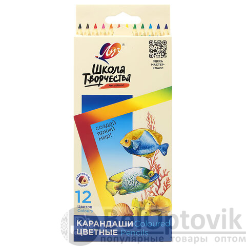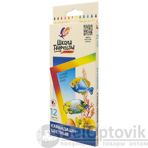 Карандаши цветные ЛУЧ "Школа Творчества", 12 цветов, трёхгранные, натуральное дерево, 30С 1806-08