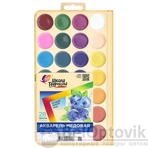 Краски акварельные ЛУЧ "Школа творчества", 28 цветов, медовые, без кисти, пластиковая коробка, 29С 1759-08