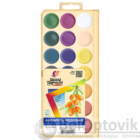 Краски акварельные ЛУЧ "Школа творчества", 21 цвет, медовые, без кисти, пластиковая коробка, 29С 1758-08