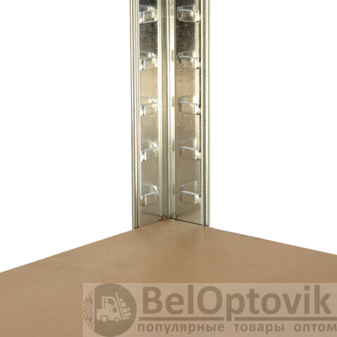 Стеллаж имеет безболтовое соединение (тип зацепа - лепесток). Шаг установки полок - 25 мм.