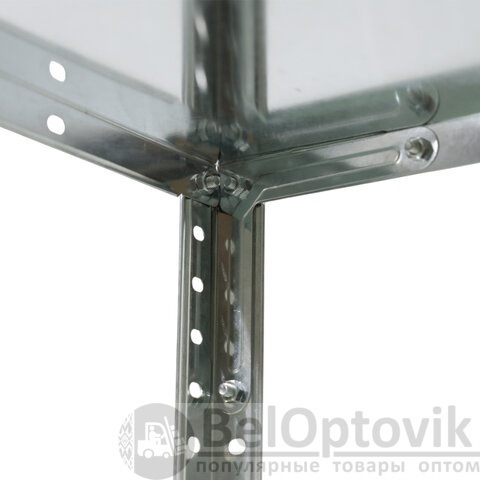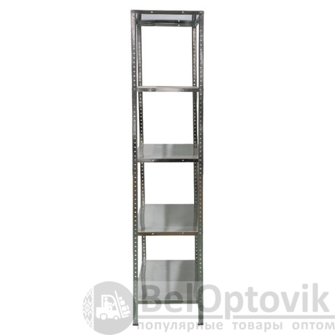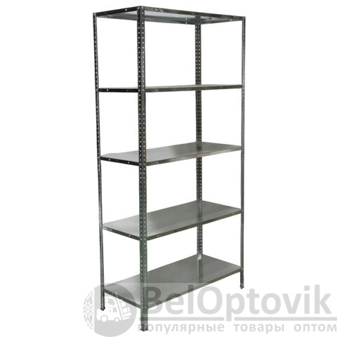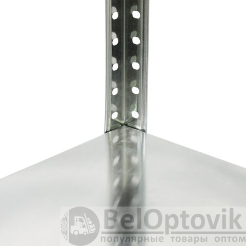 Стеллаж изготовлен из оцинкованной стали, что позволяет его использовать в помещениях с повышенной влажностью.