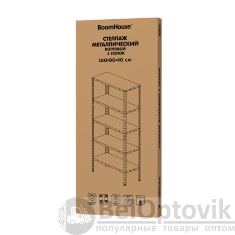 Металлический стеллаж BOOMHOUSE собирается с помощью болтов, за счет чего достигается устойчивая конструкция. Простой и экономичный способ организовать хранение вещей. Предназначены для хранения документов и различных грузов в офисе, на складе, в архиве.