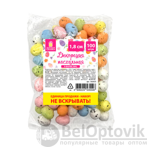 Декорация пасхальная 1,8 см "Яйца", НАБОР 100 штук, пенопласт, разноцветные, ЗОЛОТАЯ СКАЗКА, 592635