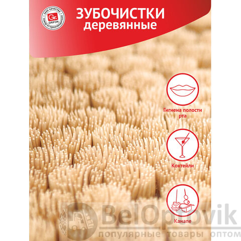 Деревянные зубочистки изготовлены из березы, длина – 65 мм, 200 штук в упаковке.