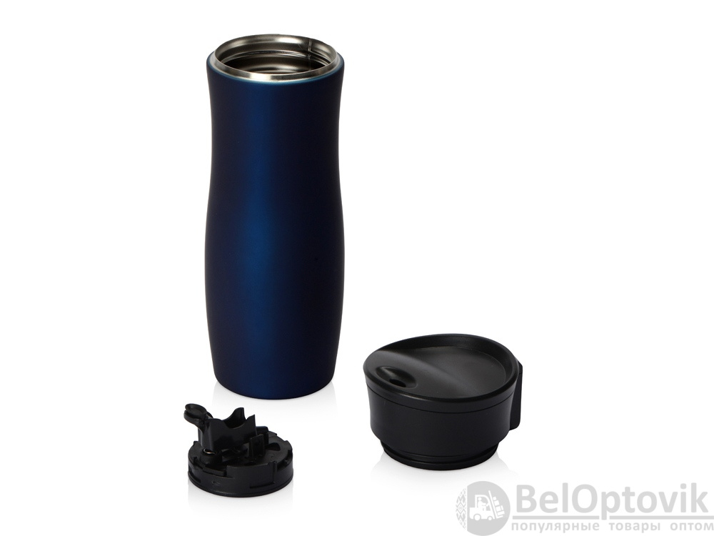 Вакуумная герметичная термокружка «Streamline» с покрытием soft-touch, Цвет темно-синий/черный