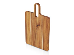 Разделочная доска «Вэй» выполнена из массива акации — прочного и влагостойкого материала, который устойчив к появлению царапин и деформации. Благодаря плотной структуре древесина не впитывает запахи и соки продуктов, что делает доску гигиеничной и безопасной в использовании. Благодаря удлиненной ручке доска удобно лежит в руке, а большое отверстие позволяет с легкостью повесить доску на крючок для хранения.