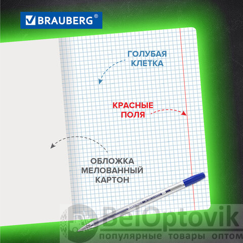Школьная тетрадь BRAUBERG с обложкой, изготовленной из импортного мелованного картона. Подходит для всех видов пишущих принадлежностей, включая шариковые, гелевые, капиллярные и перьевые ручки: написанное на одной стороне не просвечивается на другой.