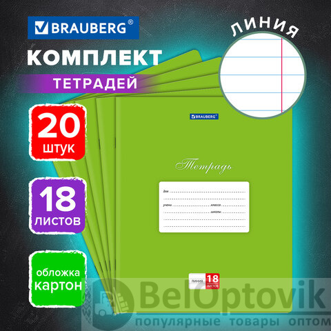 Тетради ДЭК 18 л., КОМПЛЕКТ 20 шт., BRAUBERG КЛАССИКА, линия, обложка картон, ЗЕЛЕНАЯ, 106970