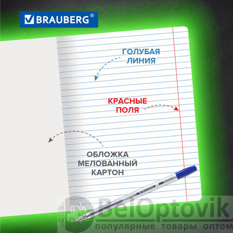 Школьная тетрадь BRAUBERG с синей обложкой, изготовленной из импортного мелованного картона. Подходит для всех видов пишущих принадлежностей, включая шариковые, гелевые, капиллярные и перьевые ручки: написанное на одной стороне не просвечивается на другой