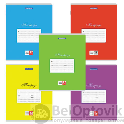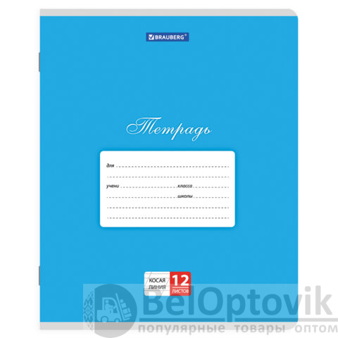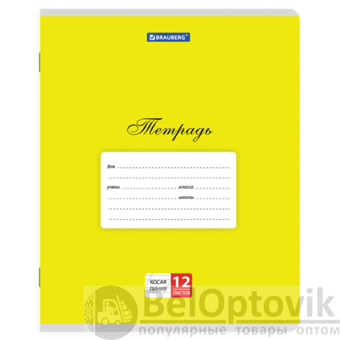 Внутренний блок из офсетной бумаги плотностью 60 г/м2 содержит 12 листов в косую линию с полями. Обложка изготовлена из импортного мелованного картона, что позволит сохранить тетрадь в аккуратном состоянии на протяжении всего времени использования. Скрепка надежно соединяет листы между собой.
