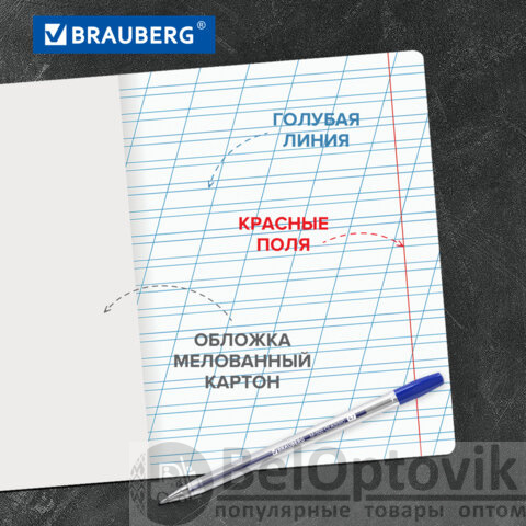 Школьная тетрадь BRAUBERG "КЛАССИКА" с яркой обложкой зеленого цвета. Идеально подходит для письма шариковыми, гелевыми и капиллярными ручками.