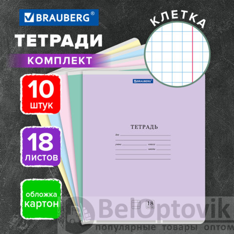 Тетради ДЭК 18 л., КОМПЛЕКТ 10 шт., BRAUBERG "КЛАССИКА NEW", клетка, обложка картон, АССОРТИ, 107076