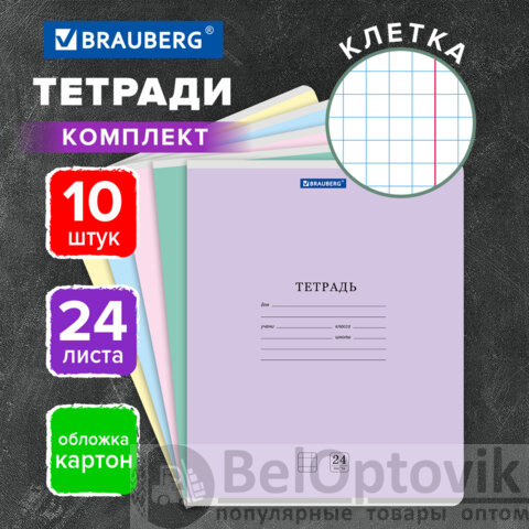 Тетради ДЭК 24 л., КОМПЛЕКТ 10 шт. BRAUBERG "КЛАССИКА NEW", клетка, обложка картон, АССОРТИ, 107090
