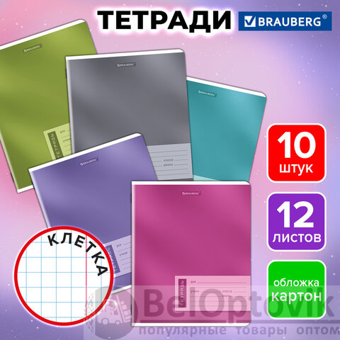 Тетради ДЭК 12 л., КОМПЛЕКТ 10 шт., BRAUBERG, клетка, обложка картон, "ONE COLOUR", 107313