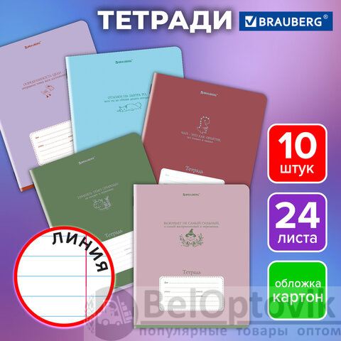 Тетради ДЭК 24 л. КОМПЛЕКТ 10 шт. BRAUBERG, линия, обложка картон, "PHRASES", 107347