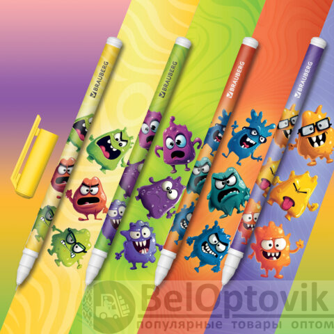 Ручка гелевая BRAUBERG "МОНСТРИКИ" – надежный пишущий инструмент и запоминающийся аксессуар, который дополнит процесс ведения записей положительными эмоциями и вдохновит на новые идеи.