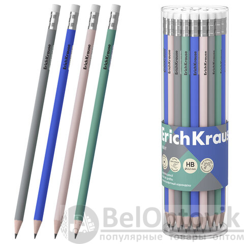 Чернографитный карандаш ERICH KRAUSE "Navy" поставляется с ластиком.