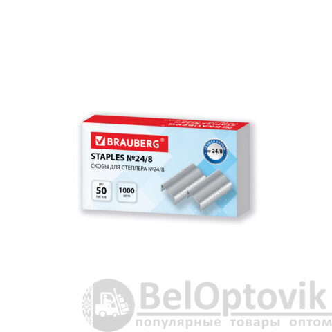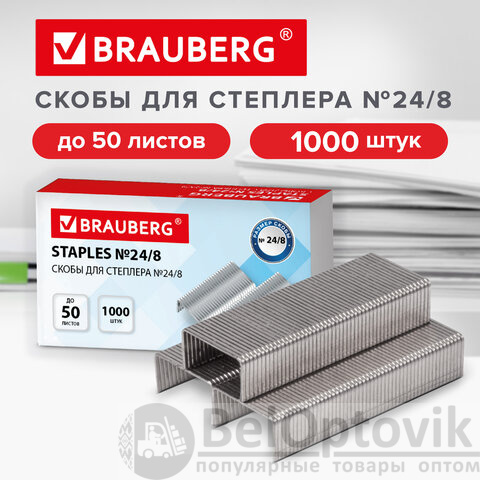 Заточенные скобы для степлера BRAUBERG размером №24/8 обеспечивают сшивание до 50 листов.