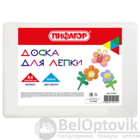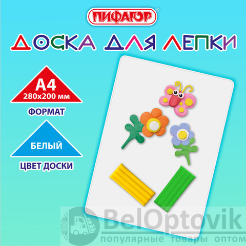 Доска для лепки А4, 280х200 мм, ПИФАГОР, белая, 274253
